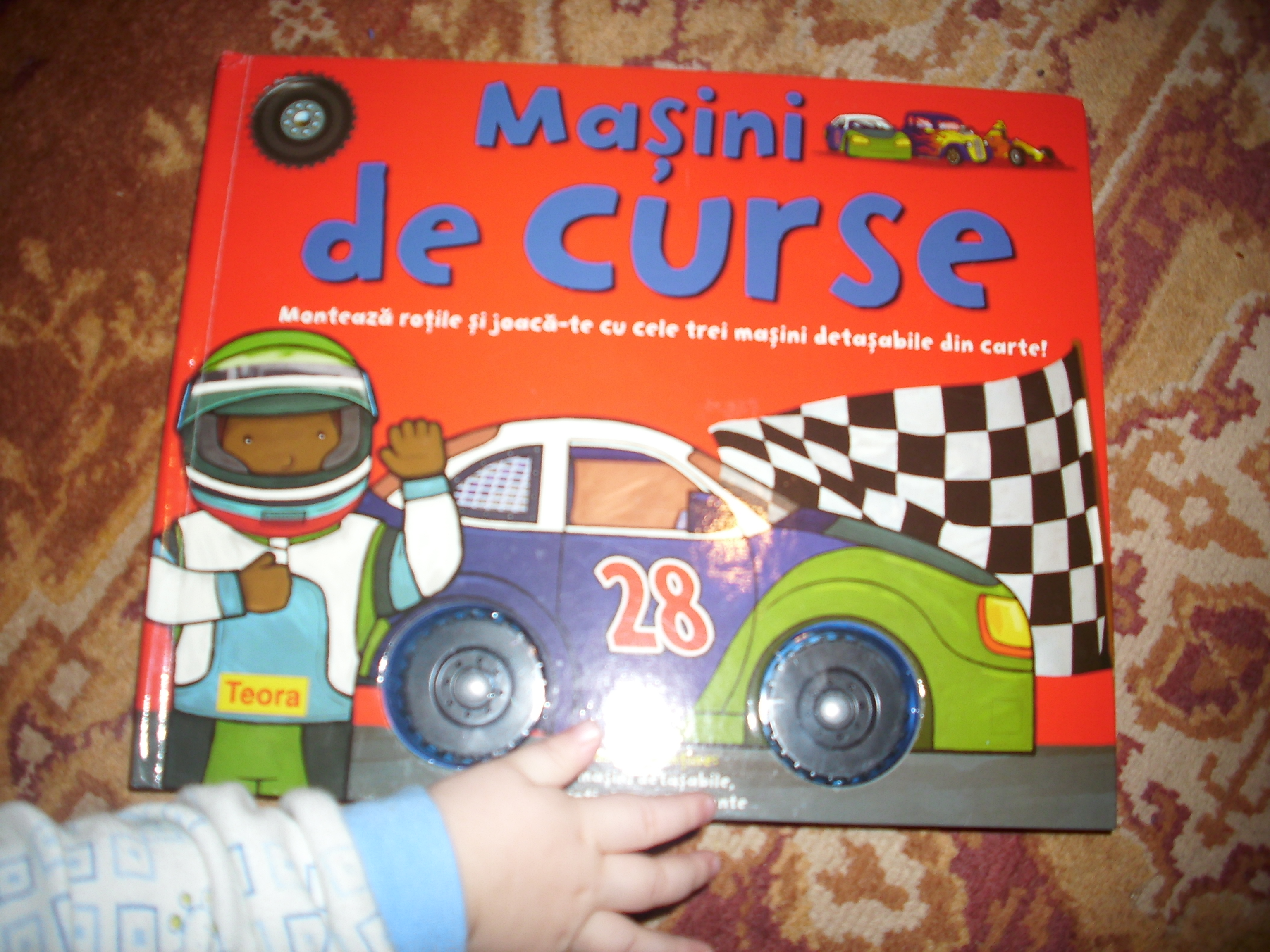 Cartea are in interior 4 pagini groase, cartonate. Sunt prezentate 3 masinute de curse diferite, pilotii fiind: Renata Tunata :), Sirica Formulica si Ionica Vitezica. Merge si pentru copilasi de 5-6 ani pentru ca are tot felul de informatii , unele mai complexe legate de masinile de curse.
