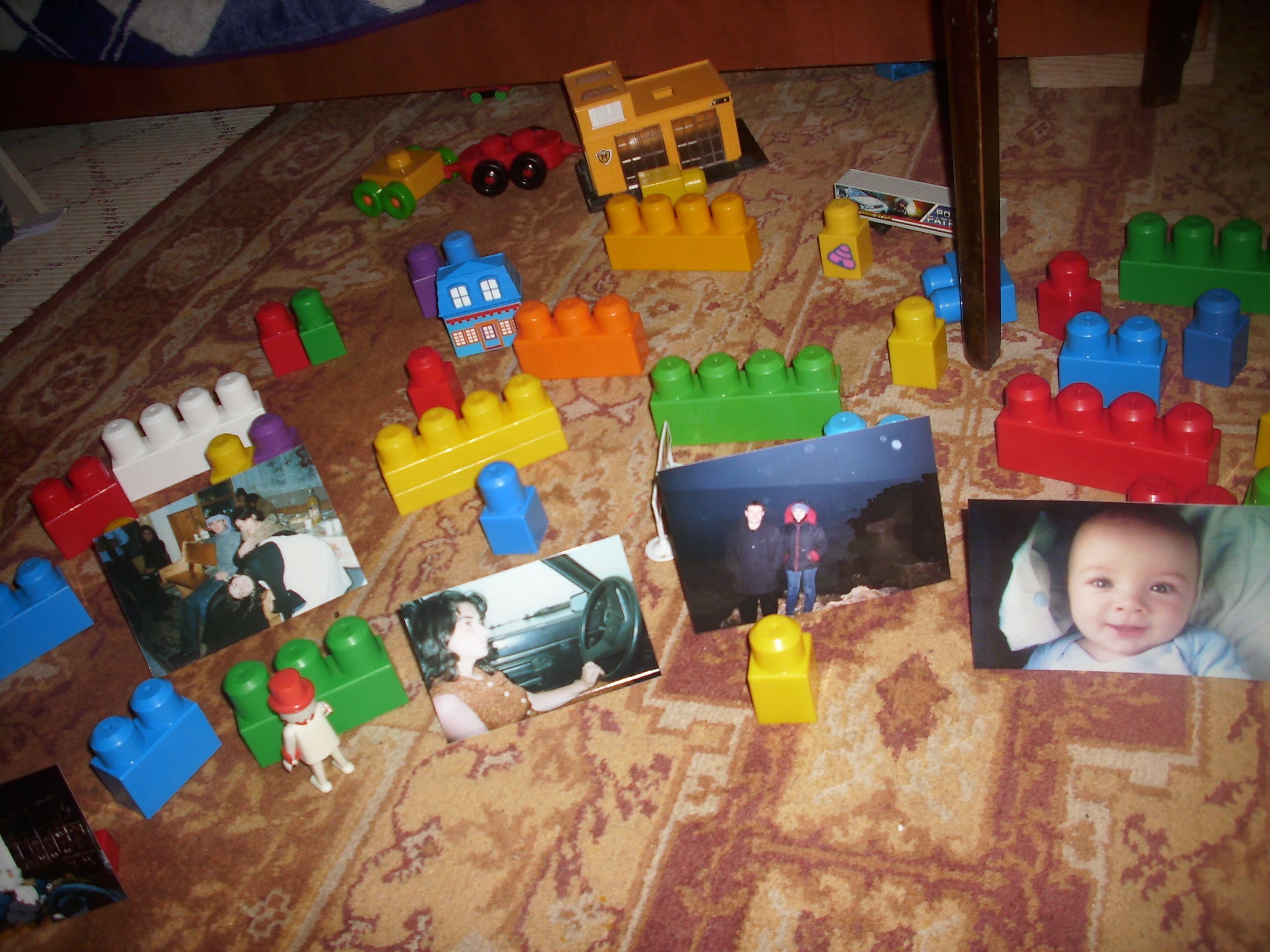 IN seara aceasta, ne-am facut propriul muzeu :). E un joc ce l-am jucat si anul trecut. Nu am avut nevoie decat de cuburi aranjate strategic de noi pe covor, de o multime de fotografii si de cativa omuleti (vizitatorii).