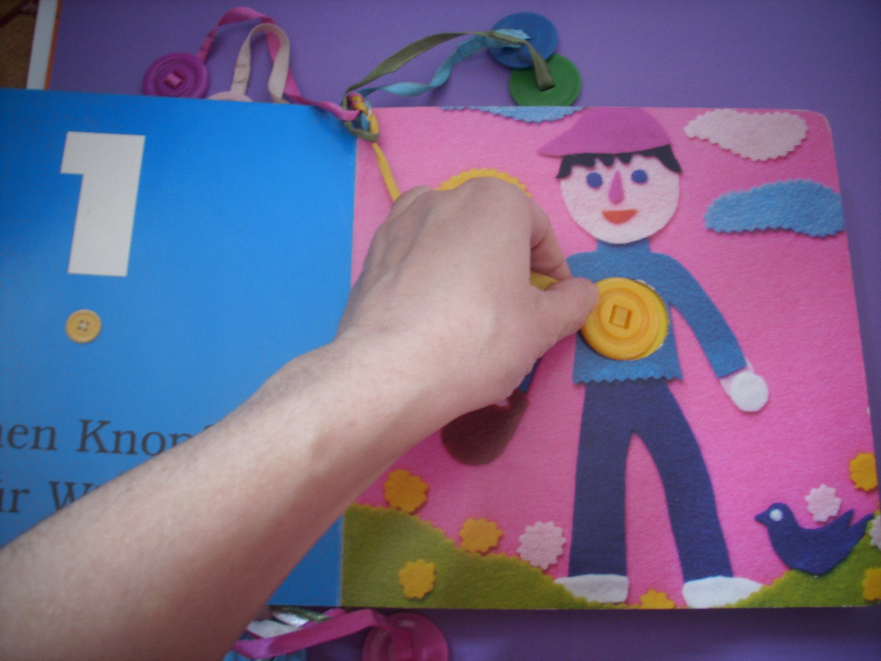 Cand am zarit in magazinul Julia Toys, o carte cu niste nasturi uriasi, nu am mai stat pe ganduri si i-am luat-o nazdravanului meu(pe atunci avea 2 anisori).