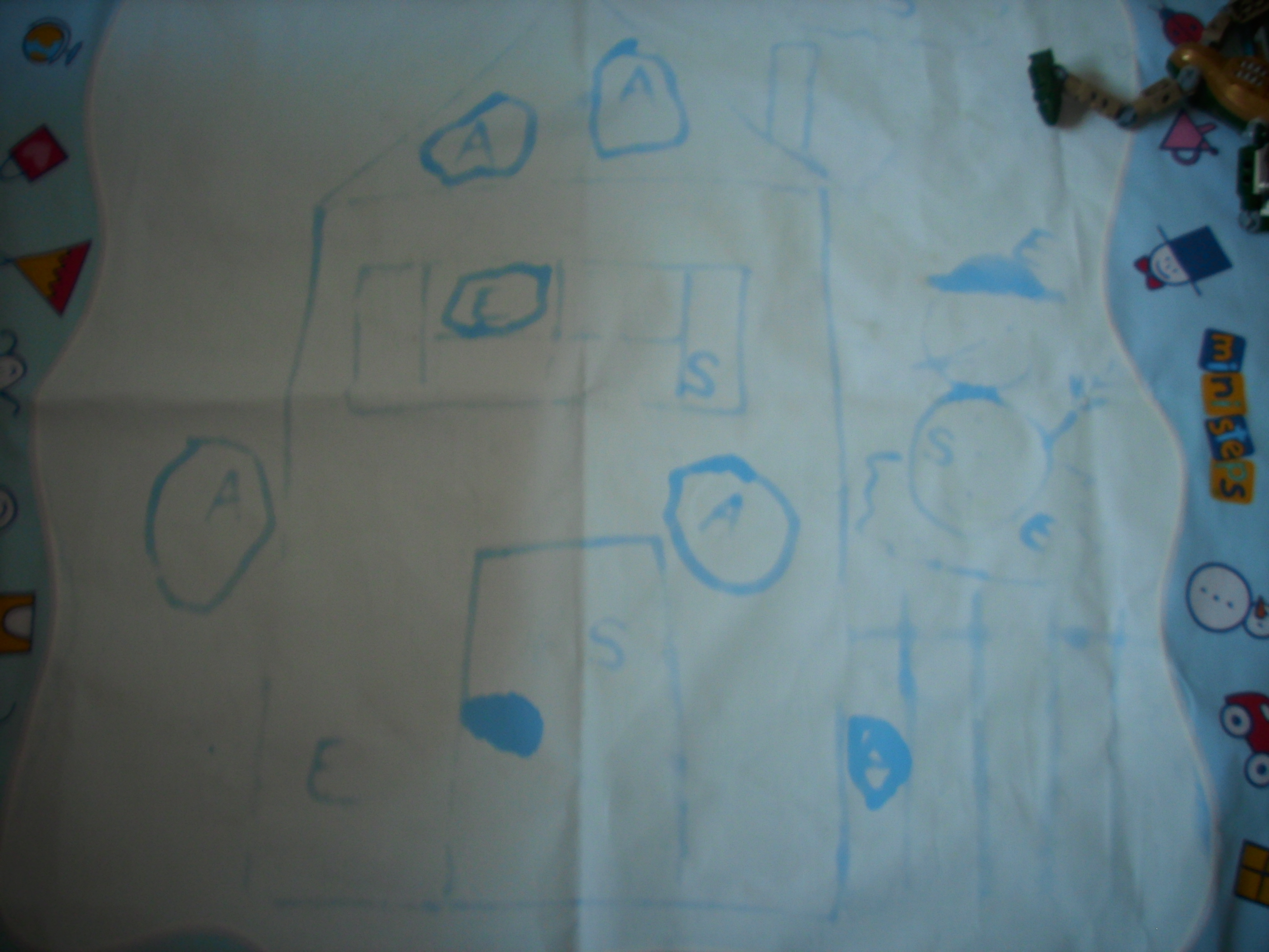 Pentru ca A. are tendinta de a mazgali peretii , pixul cu apa a fost chiar nimerit pentru el :)…ii poate mazgali acum dupa placerea lui cum doreste.Uneori, se deseneaza si pe fata 🙂