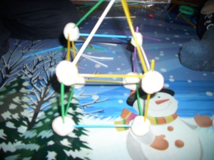 Verisorii nostri mai mari au un joculet tare interesant cu tot felul de bile ce au gaurele in ele si betisoare. Cu acestea, pot face tot felul de figuri in spatiu.