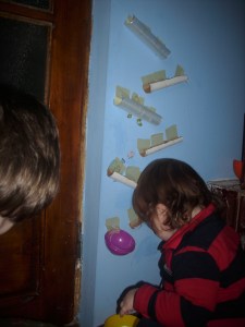 Si uite asa mi-am dat seama, ca daca le-as fi luat o jucarie de genul acesta distractia ar fi tinut vreo 2 ore si atat! A doua zi nu ar mai fi fost interesati de ea :). MAi pun din cand in cand cate o biluta pe traseu..dar incantarea nu mai e aceeasi, dar D. nu m-a lasat sub nici o forma sa-l desprind de pe perete…asa ca vreo luna, doua va sta pe acolo. 🙂