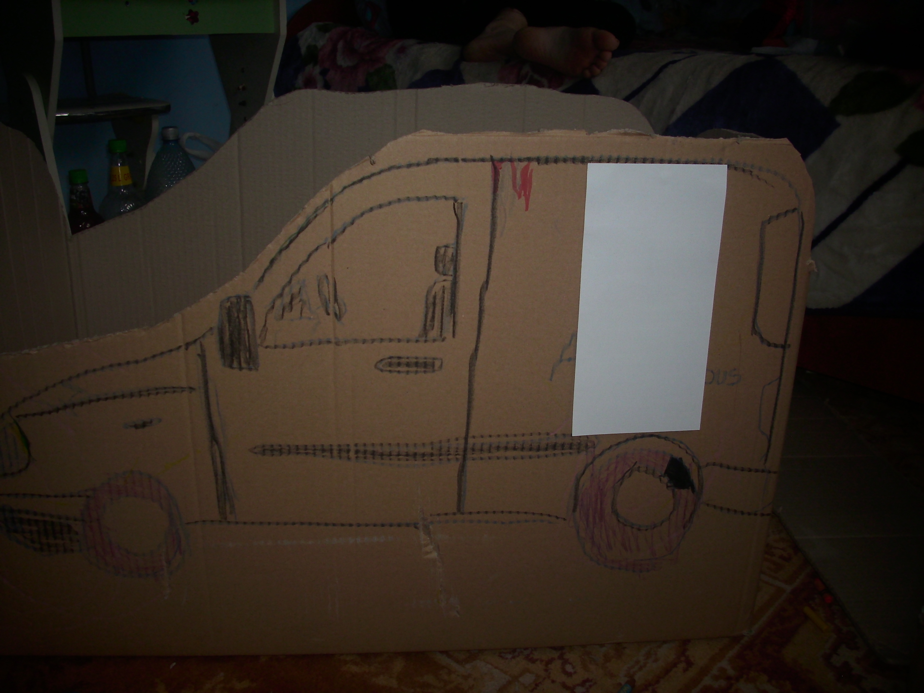 Tati a facut schita masinii , D. a colorat pe ici colo, eu am finisat detaliile si am decupat cu cutterul marginile.