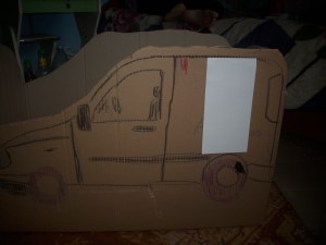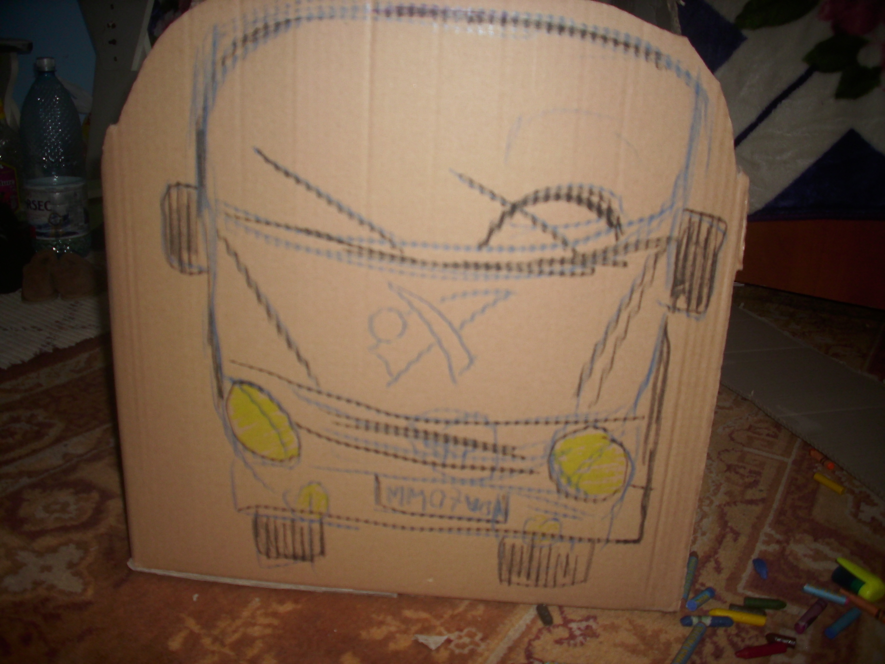 si eu ma gandisem la asta :D, dar ursii mei erau prea dornici sa urce in masina….eu faceam decupajele cu cutterul si mergea greu prin cutia groasa…asa ca i-am lasat sa se bucure de ea asa cum era,mai nefinisata.