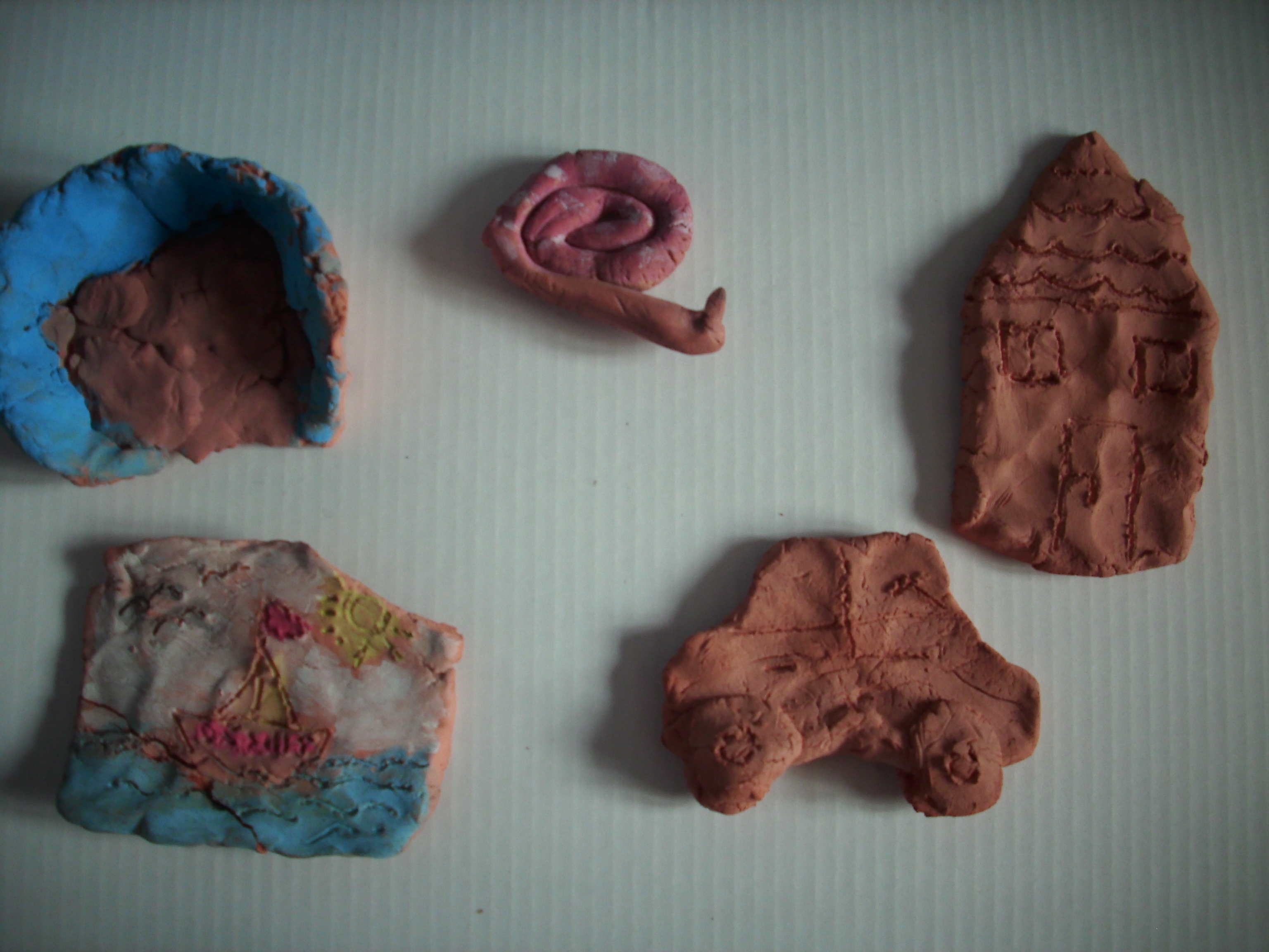 Au urmat dupa aceea o serie de capodopere 😀 , pe care eu le-am modelat si D. le-a pictat. Oricat am framantat lutul in mana, tot s-a crapat usor. Daca stiti voi vreun secret ca sa nu se intample asta, poate ni-l impartasiti si noua. 🙂