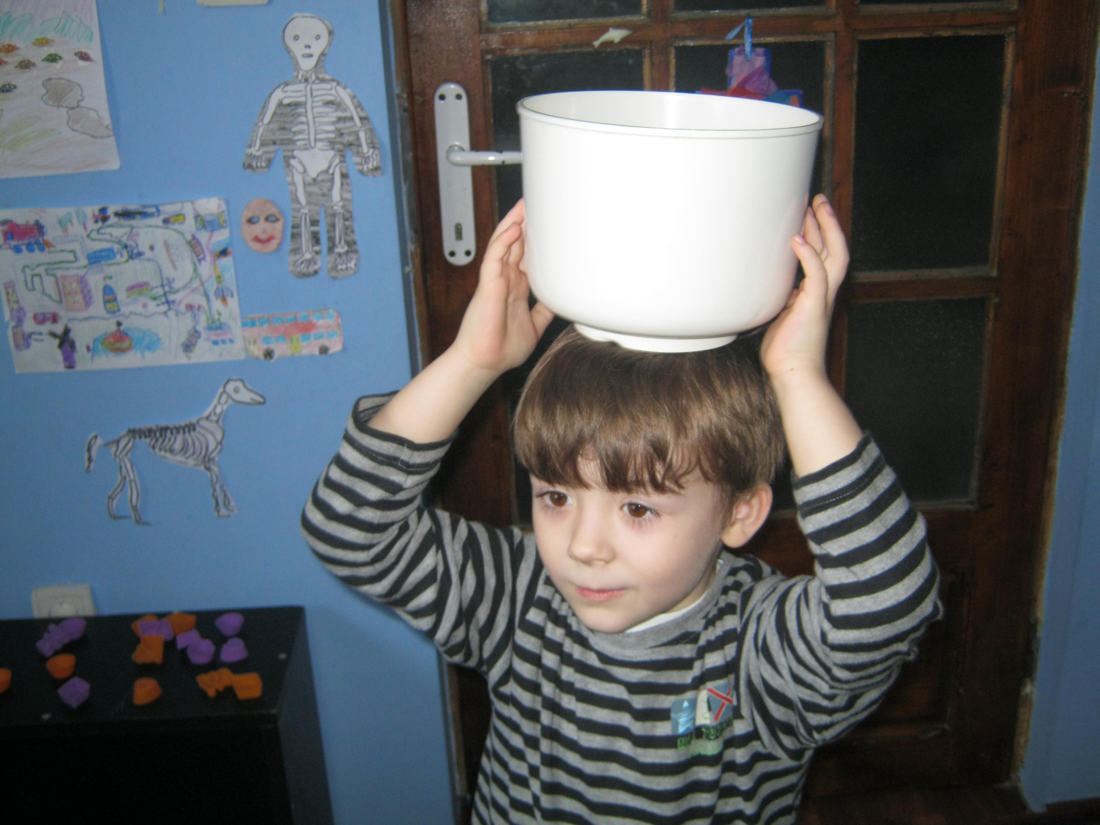 Am pus un scaun in mijlocul casei, m-am catarat pe el si aruncam din cand in cand cate 4-5 bilute si D. era atent in ce parte vor cadea si se straduia sa le prind pe toate.