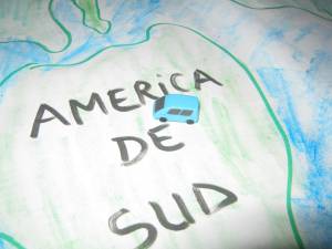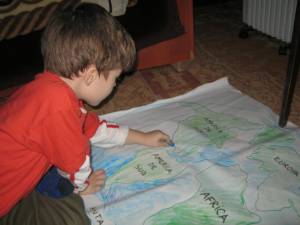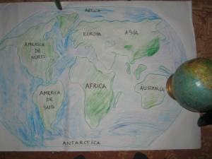 Am desenat pe o coala mare de ambalat globul pamantesc (turtit, cum spune D. 😀 ).