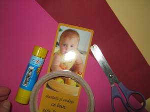 -foarfeca, lipici, coli colorate, cutter, fotografii in care apar  copilasii dvs.