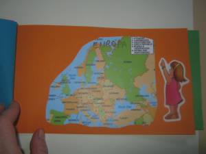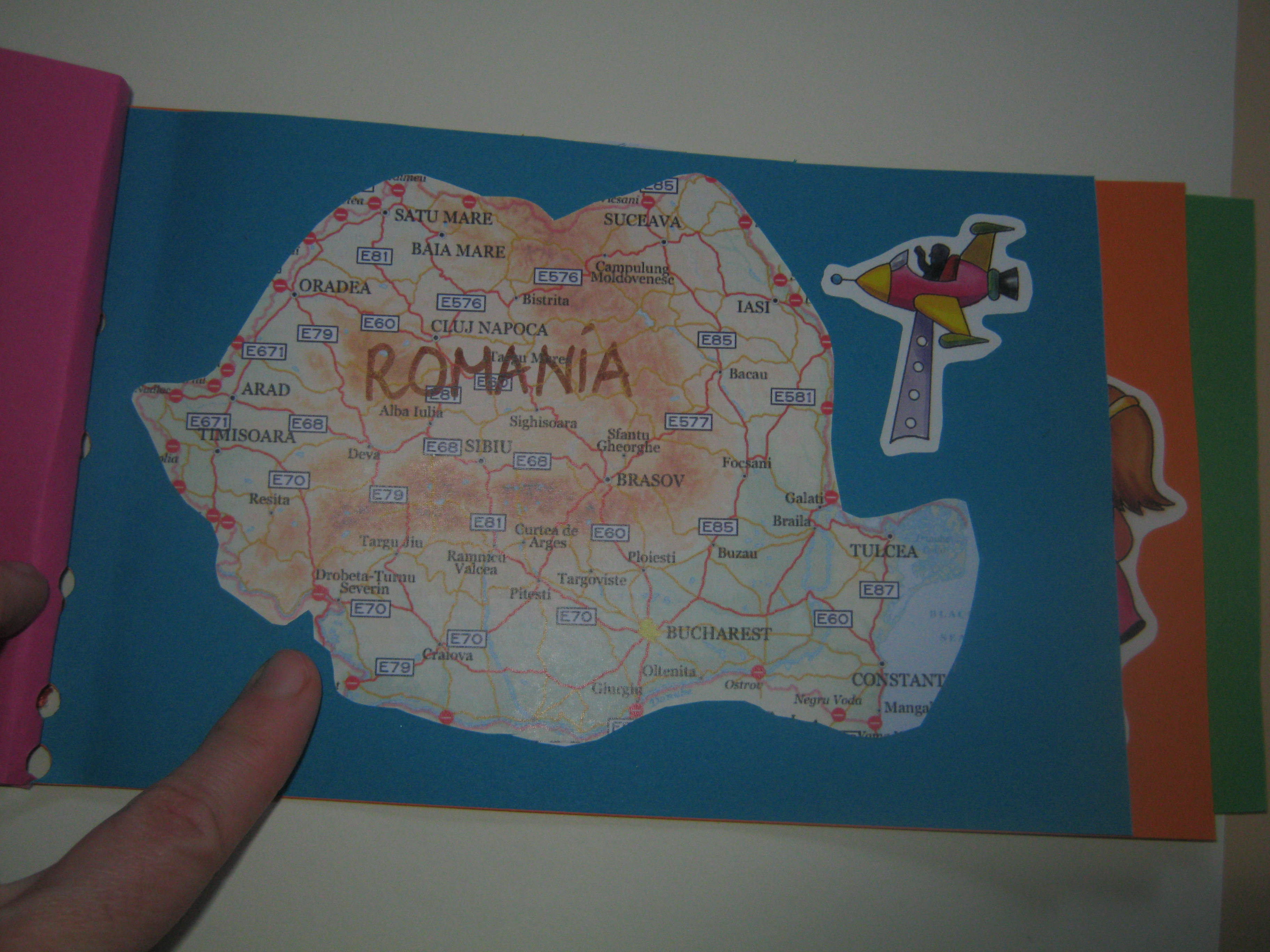 imaginile au fost facute de mine, nu le-am descarcat de undeva. Am gasit o harta a orasului nostru, apoi a tarii noastre, a Europei, o poza a copilulului. Trebuie doar reeditate ca sa iasa carticica 🙂