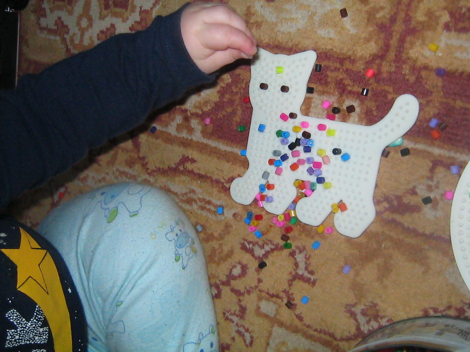 Ieri, le-am scos din ascunzatoarea secreta (pana acum doar D. a avut acces la ele) si i le-am aratat lui A. MI-am propus sa facem o sortare pe culori, sa le aseze cum poate pe sablon….sau pur si simplu sa se joace cu ele… Sigur, nu sunt potrivite pentru varsta lui, dar cum a trecut peste faza „bagatului in gurita”, am zis ca merita sa incercam :).