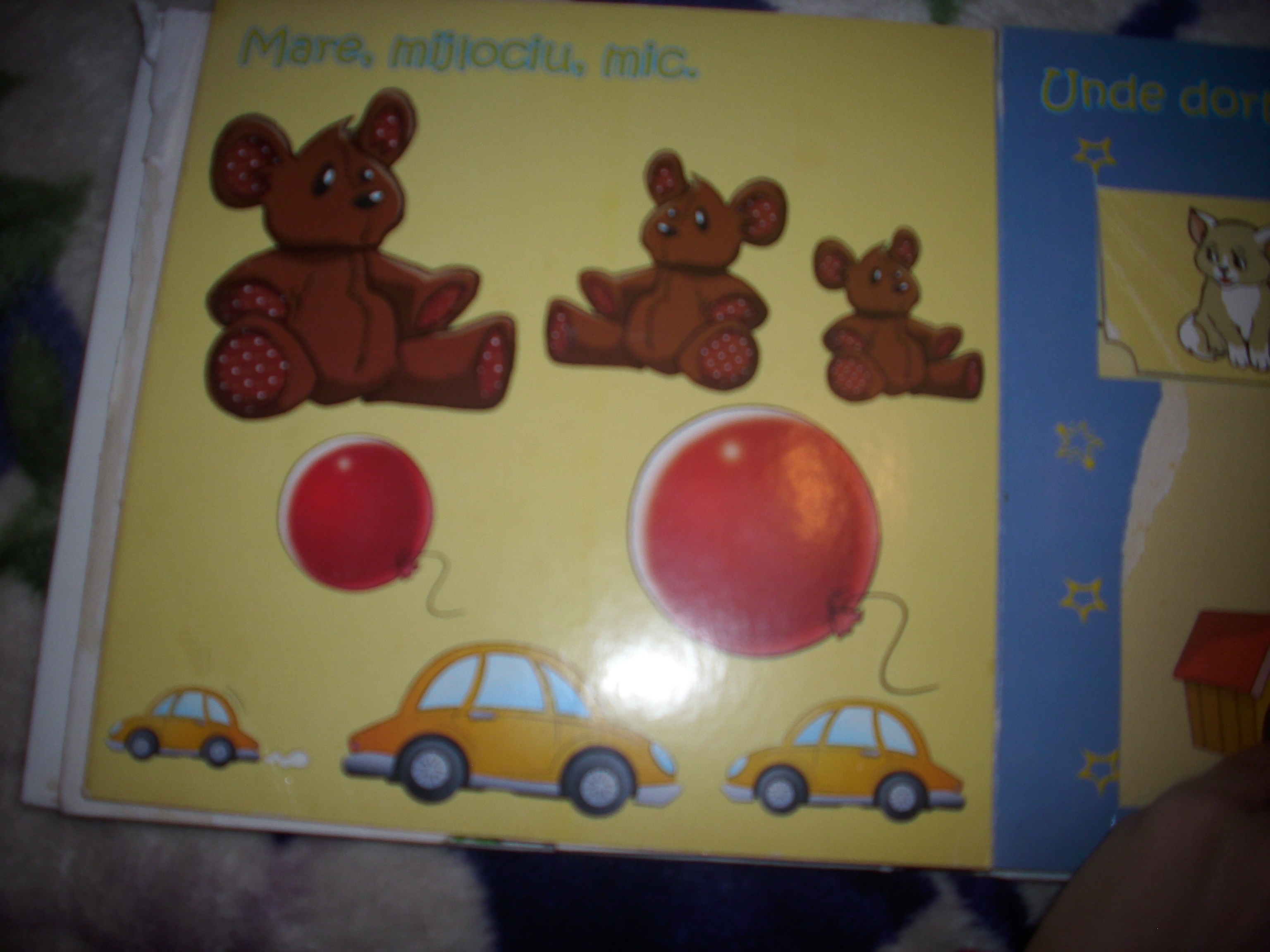 Are o multime de joculete captivante pentru cei mici -este , de fapt o carte-jucarie, de genul: „trage-impinge clapetele”, „deschide fereastra”.