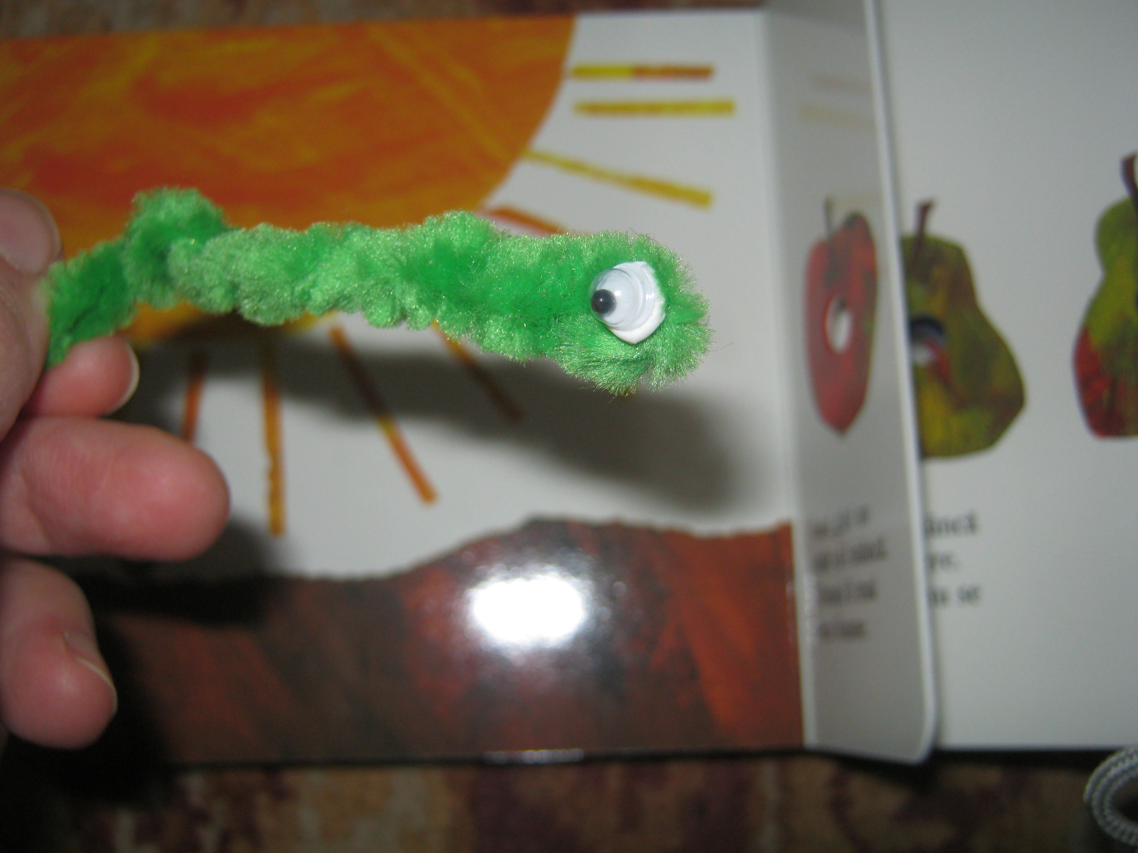 Am confectionat o mica omiduta din pipcleaner verde ; i-am pus doi ochisori mobili fff mici. Era tare haioasa.
