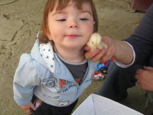 Bineinteles, ca aparitia puisorilor s-a transformat si intr-o micuta lectie de zoologie. Pasarile fac puisori doar prin oua : care stau la caldura in cuib, sub corpul pasarii mama timp de 3 saptamani(in cazul pasarilor de curte asa se intampla. Exista si aparaturi (cum este clocitoarea bunicului), unde pot fi puse ouale la caldura. Puisorii din interiorul oualor se hranesc cu galbenusul de acolo , asa ca, dupa ce se nasc, timp de o zi sau doua nu au nevoie nici de hrana, nici de apa.