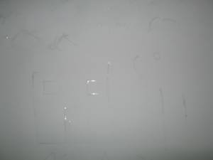 Dupa ce se termina desenul, se pune foaia pe o sursa de caldura sau la soare. Si desenul incepe sa apara (nu stiu cat de bine se vede in fotografia urmatoare). IN carte, se sugera ca sa se picteze peste desenul facut cu lamaie . NU am incercat asta, dar data viitoare vom face si asa.