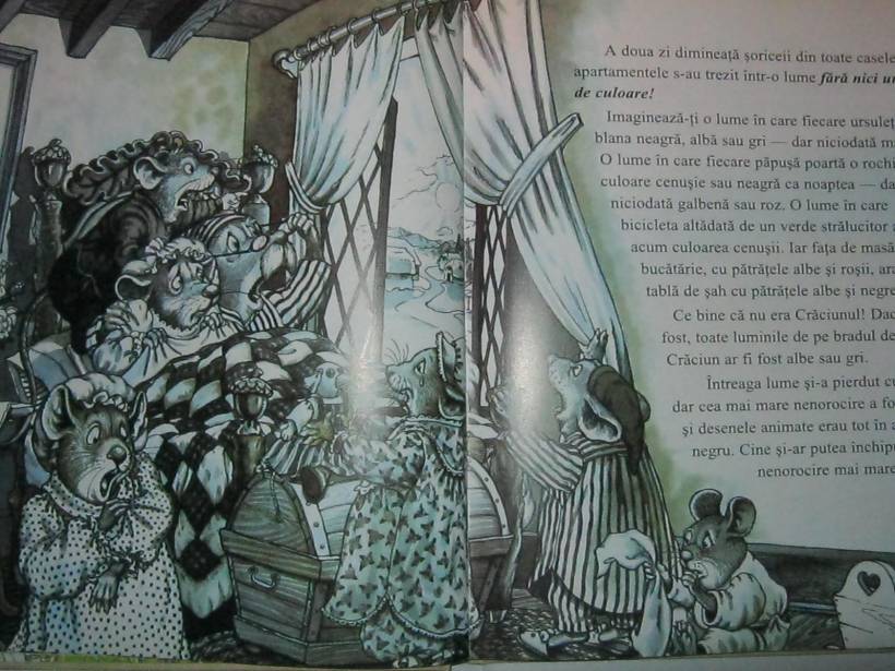 Jucariile copiilor ar fi doar albe sau negre, cerul gri, iarba neagra, prajiturile in culori fade si urate de alb si negru……cred ca ar fi cosmarul cel mai urat al fiecarui om.