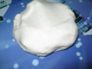 Eu am mai adaugat faina totusi, pana compozitia nu s-a mai lipit de maini, dar ramasese tot moale si usor de modelat.