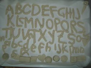 Le-am pus la cuptor abia a doua zi. Sa stiti ca plastilina nu s-a crapat deloc. Aratau foarte bine, ma refer la litere, formele mai trebuiau lasate, dar au putut fi pictate si asa cum erau.