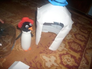 „Pai, nu trebuie sa-i facem si o casa, un iglu?” Tot revista m-a salvat!!! IMprovizam eu ceva….dar uneori, ma paraseste imaginatia de la prea multa oboseala :))))