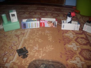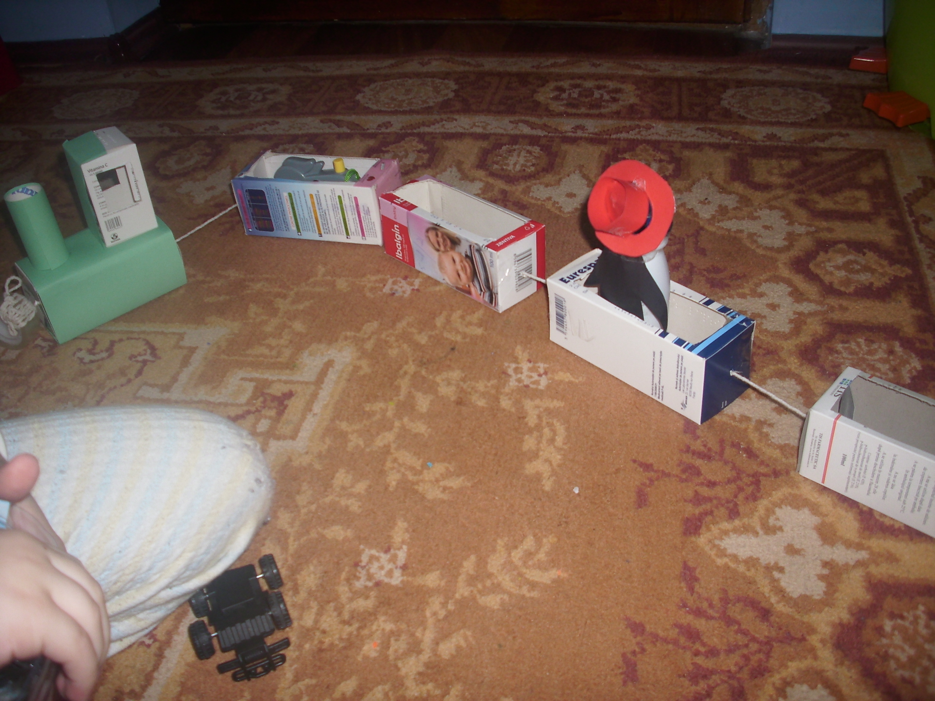 Sigur, nu putea lipsi trenuletul care apare la inceputul desenului. Pe acesta l-am facut din cutii de la medicamente. 🙂