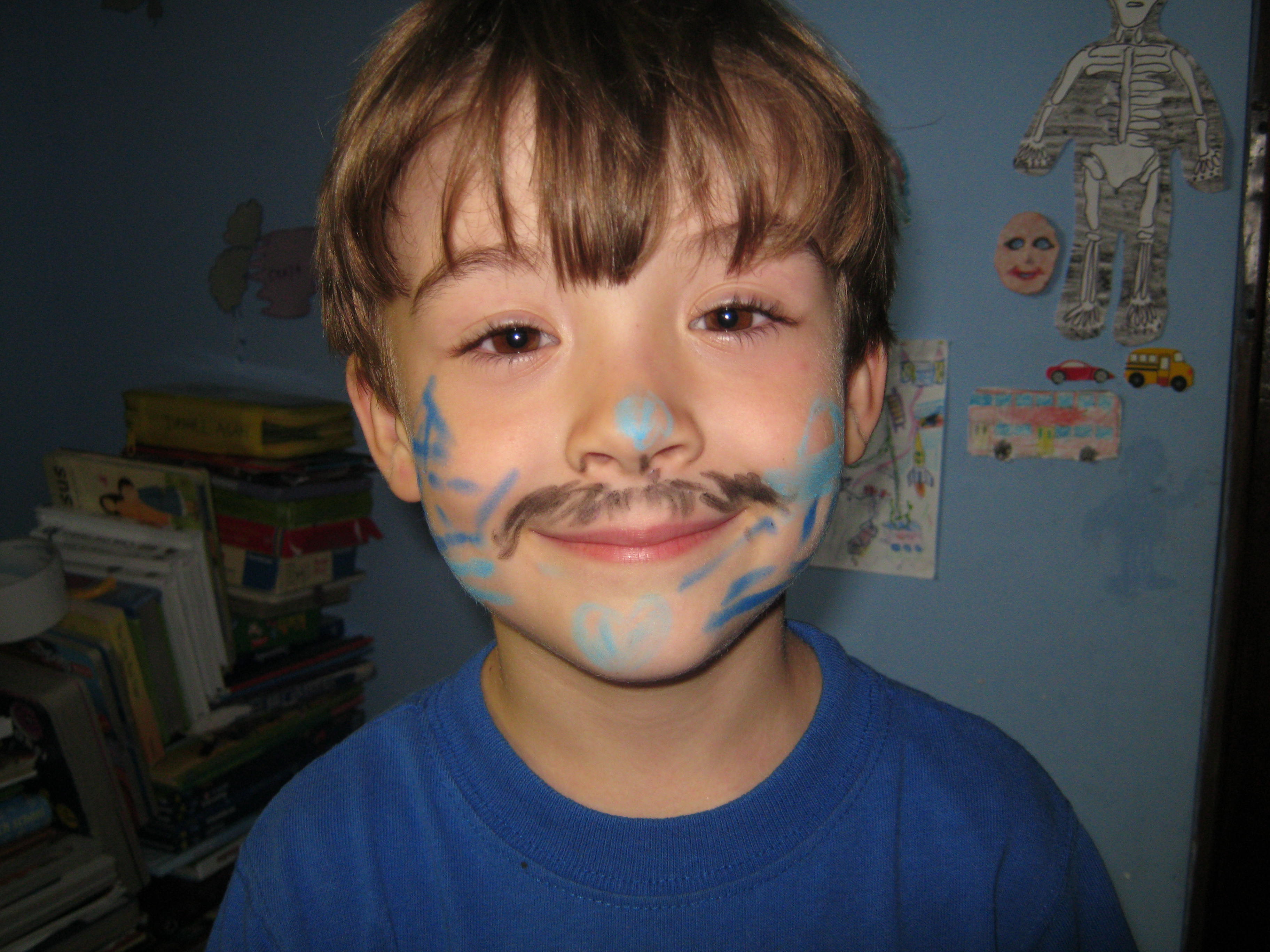 Daca doriti sa faceti aceasta activitate si va este teama ca nu se vor indeparta culorile de pe fata, va pot da un mic ajutor: se da fata copilului cu crema hidratanta, se sterge apoi cu un servetel umed (deja fata este curata) si apoi se spala cu apa calda si putin sapun. Si gata- avem o fetioara alba si curata! 🙂