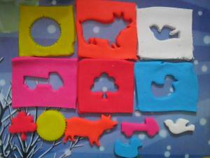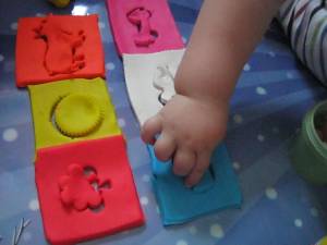 Puzzle incastru din plastilina : „Potriveste forma in sablon”