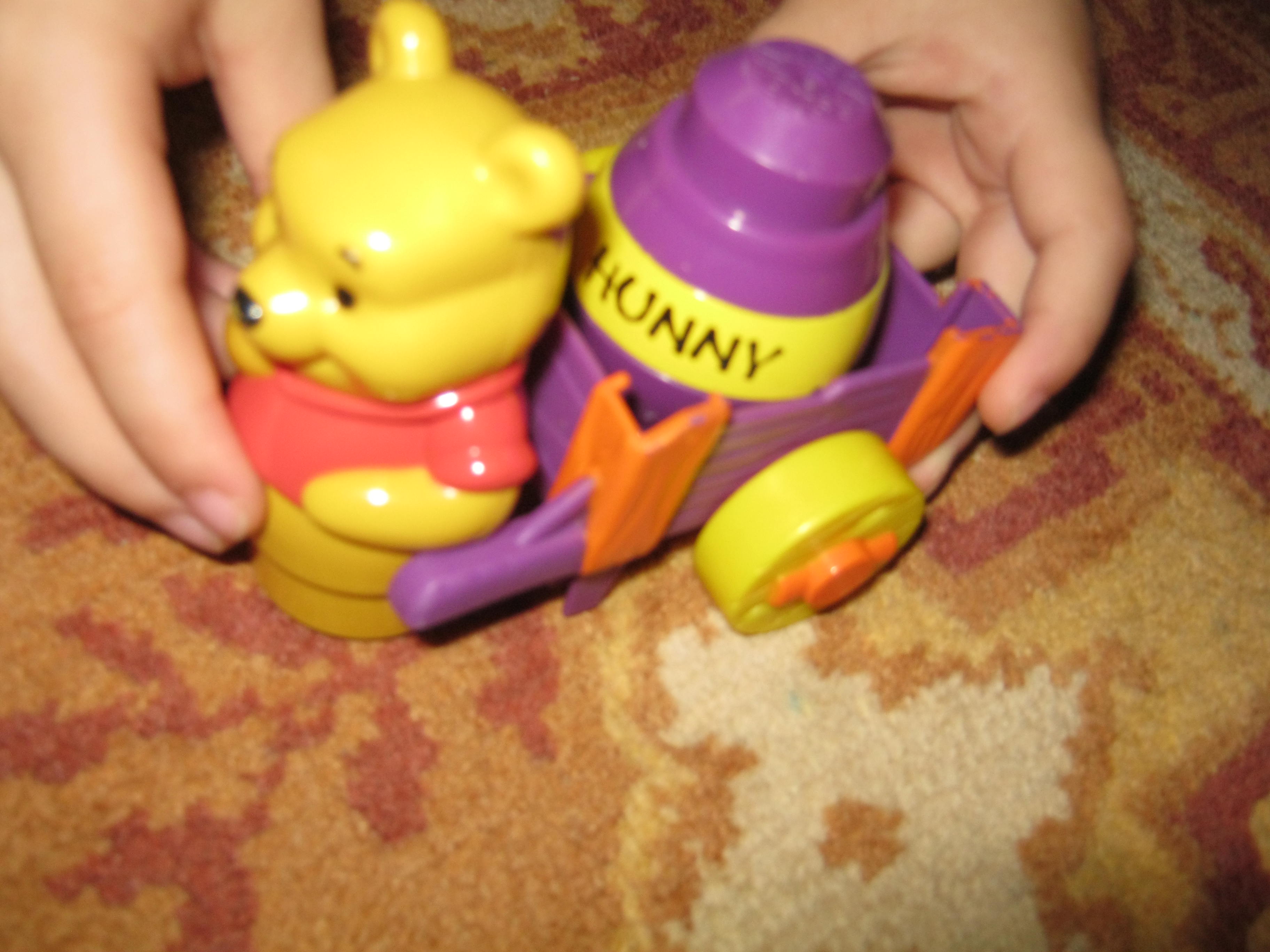 Am primit ieri un colet ce avea lucrurile din interior cu asa de multa grija ambalate incat am ramas uimita.  Acolo erau niste cuburi megablocks  cu tematica „loc de joaca cu Winnie the Pooh”. L-am obtinut in urma unui schimb (este o practica des intalnita intre mamicile de pe picasa, de obicei- eu, de exemplu fac schimb doar cu jocuri educative sau carti). Asa ..si cutia nu era mica !! O felicit pe doamna ce ni l-a impachetat pentru rabdarea si grija ei. 🙂 Daca doriti sa-i vizitati albumele acestei mamici  de  pe picasa  aveti aici linkul.