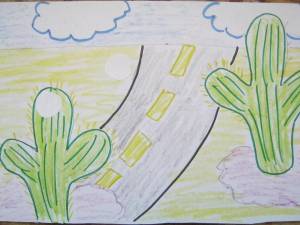 Pe planse am lipit formele albe ce trebuiau completate (asa cum se vede in prima imagine cu cactusii).