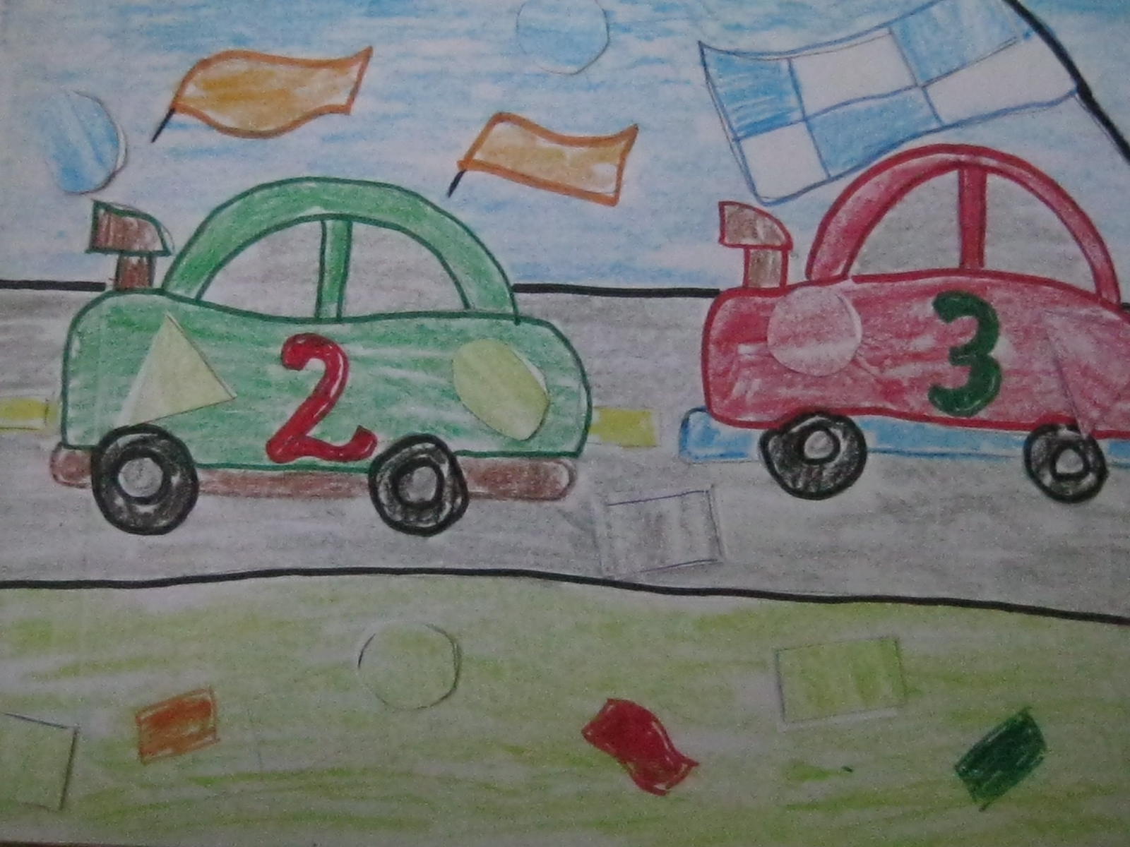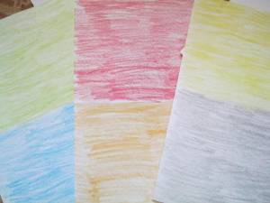 Pe unul am lipit formele albe, pe celalat buline cu culori.