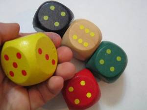 Am confectionat si zarurile. Aveam un set de 5 zaruri mari, cumparate cu 1,90 ron de la KAufland.