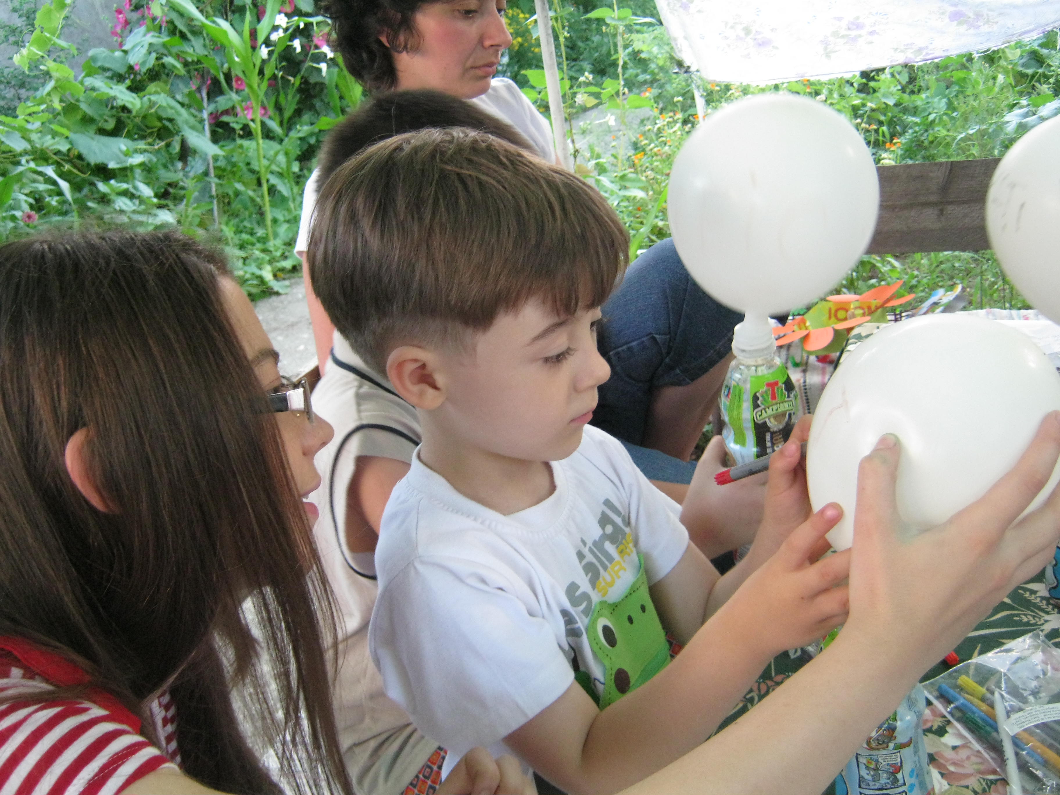 Au fost tare incantati!! I-am rugat apoi sa-si scrie numele pe baloane si sa deseneze o broasca testoasa pentru ca lui A. ii place foarte mult acest animalut.