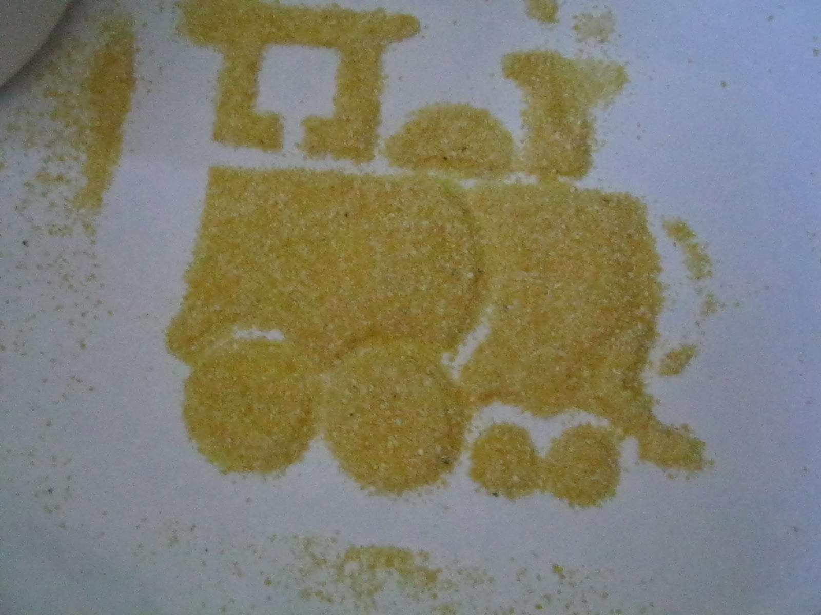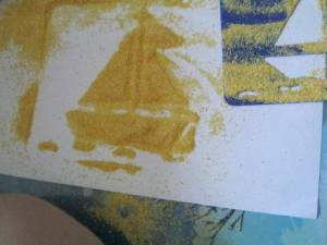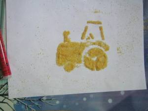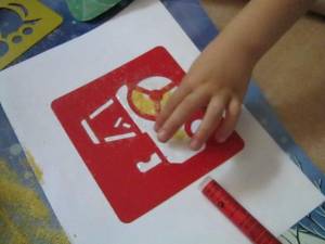 A. s-a folosit si el de sabloane ca sa faca vehicule. I-am dat o foaie alba, un borcanel cu malai si i-am spus sa il toarne peste sablon. Era tare incantat. Apoi, desprindeam cu grija sablonul si ii aratam operele lui ! 🙂 Vedeti cat e de talentat?!!! 😀