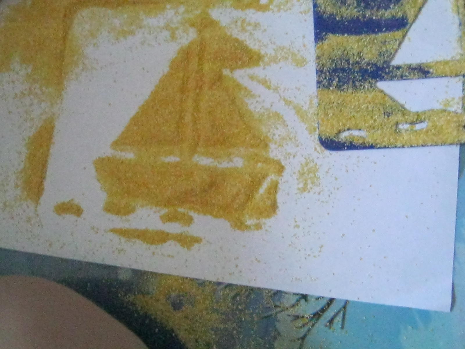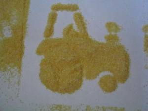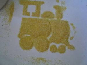 Daca aveti sabloane de tot felul ( eu va recomand si aceste sabloane mari -sunt superbe si usor de folosit chiar si de copilasii mai mici), puteti face o este o activitate asemanatoare si afara  cu ce doriti voi: malai, faina, praf de creta , orez.