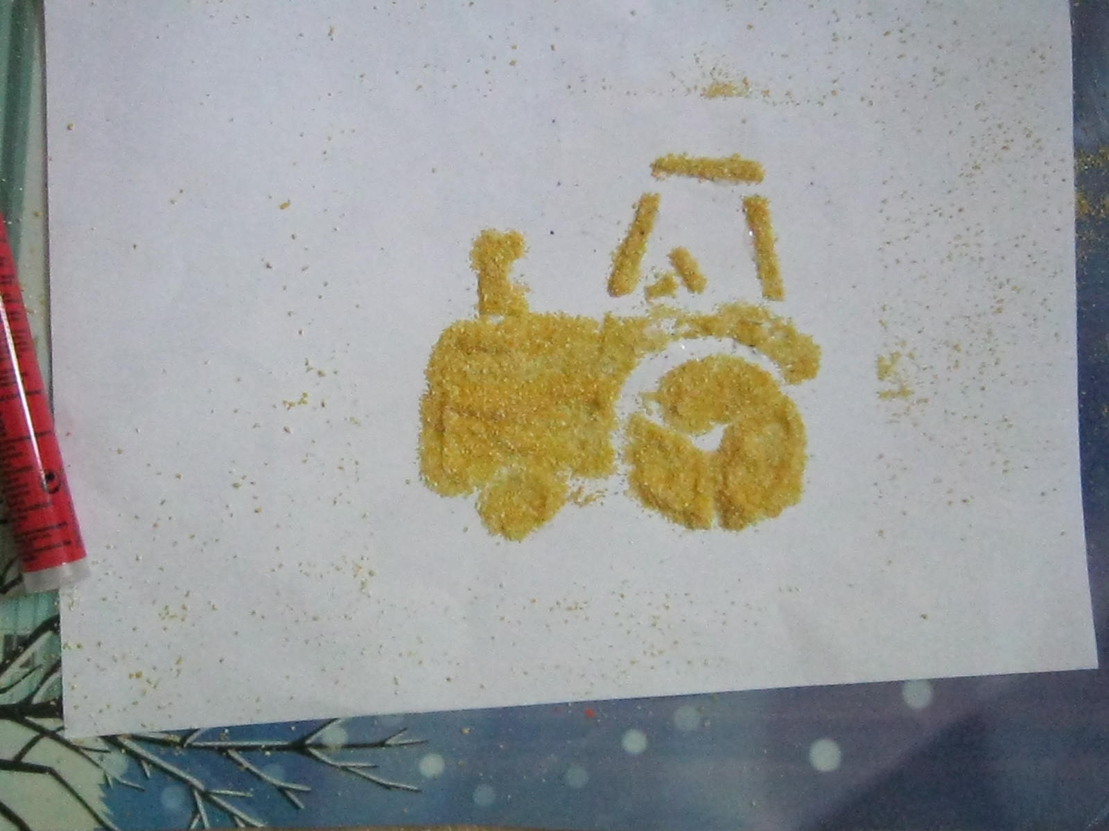 NI s-a alaturat si D. El a pus lipici pe foaia de sub sablon ca vehiculul din malai sa ramana lipit.