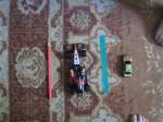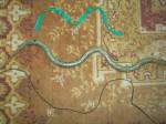 Am lipit pe covor cu banda colorata adeziva tot felul de linii.
