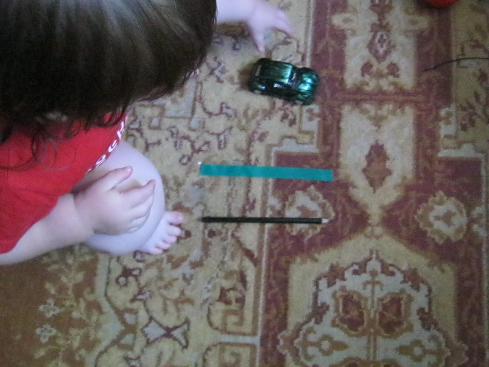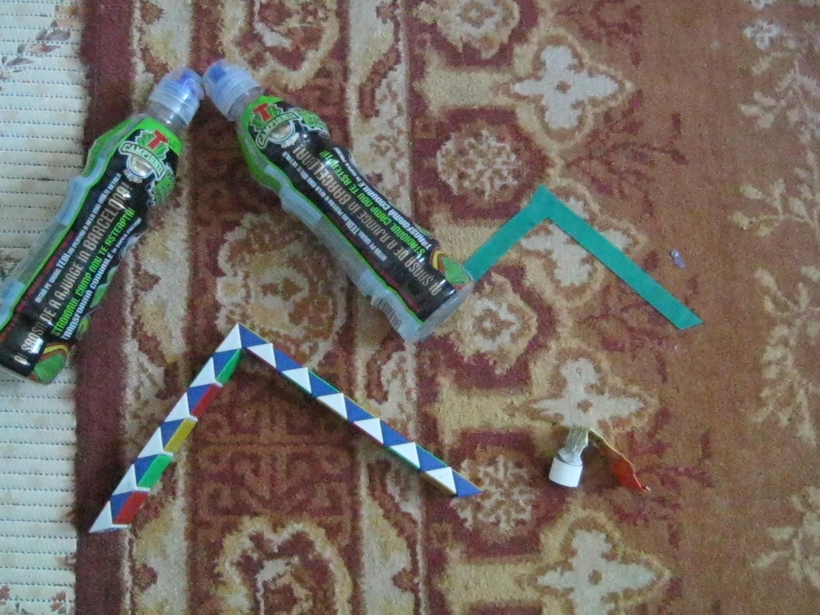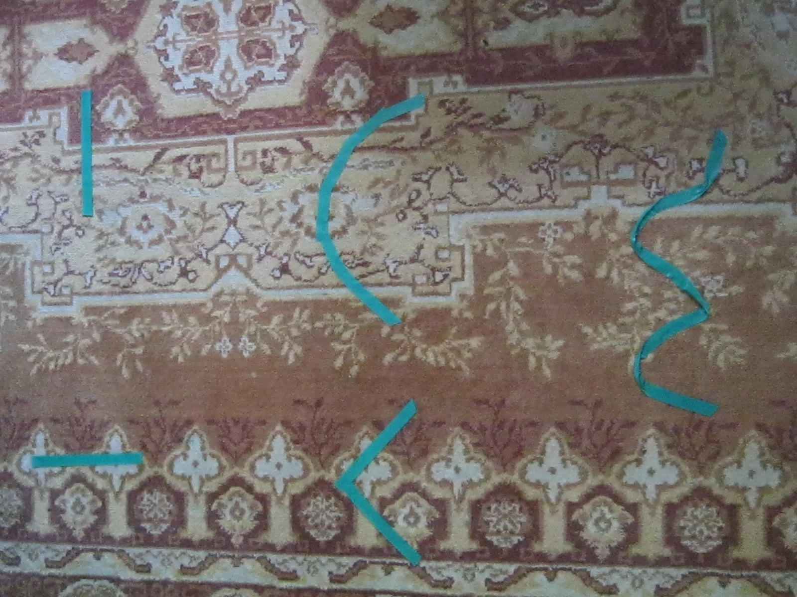 Am lipit pe covor cu banda colorata adeziva tot felul de linii.