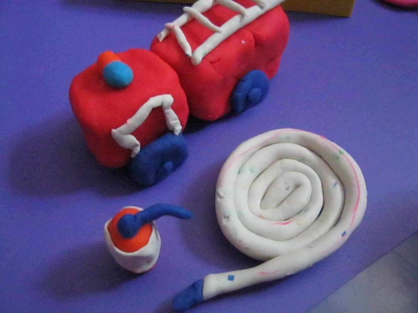 D. mi-a propus astazi cand ne-am jucat cu plastilina sa facem o masina pentru pompieri. Usor de zis, greu de facut! 😀