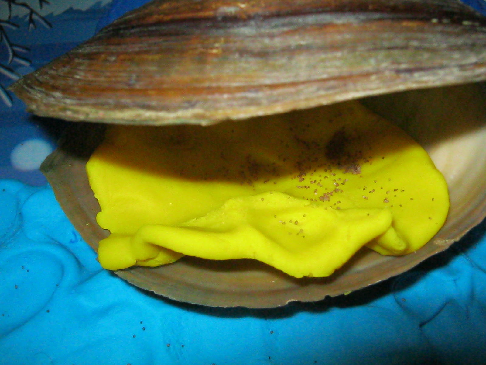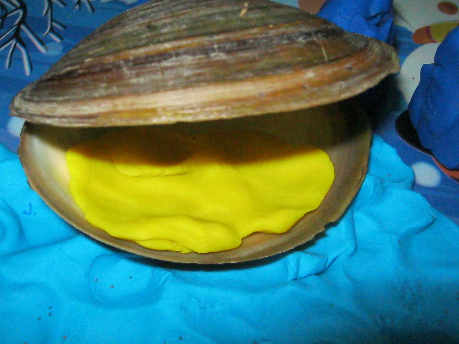 M-am tot gandit cum as putea folosi cochiliile scoicilor noastre. Si pentru ca D. avea atat de multe intrebari despre scoici, mai ales cand i-am spus ca pot face chiar si perle….i-am spus o poveste din plastilina despre viata unei scoici :).