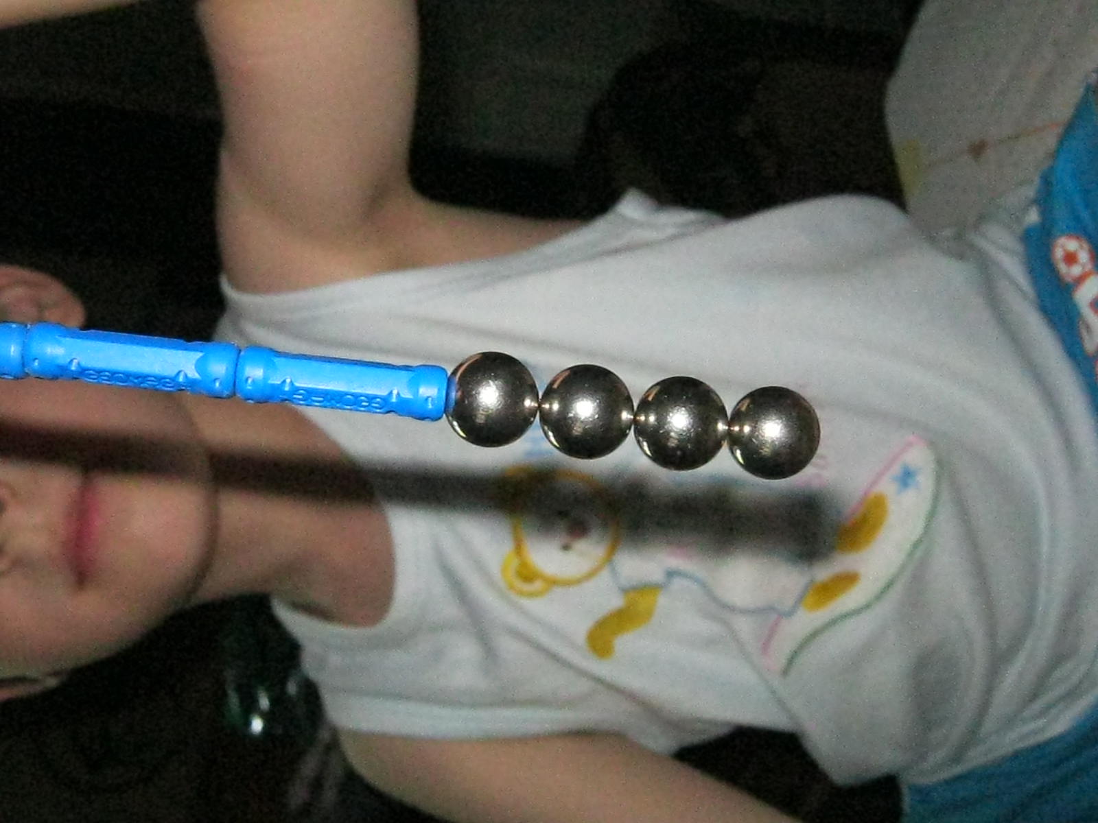 Betigasele magnetice sunt foarte „puternice”, veti vedea si micuta noastra demonstratie…am insirat pe un singur betigas mai multe bilute (care sunt grele) si nu se desprindeau.