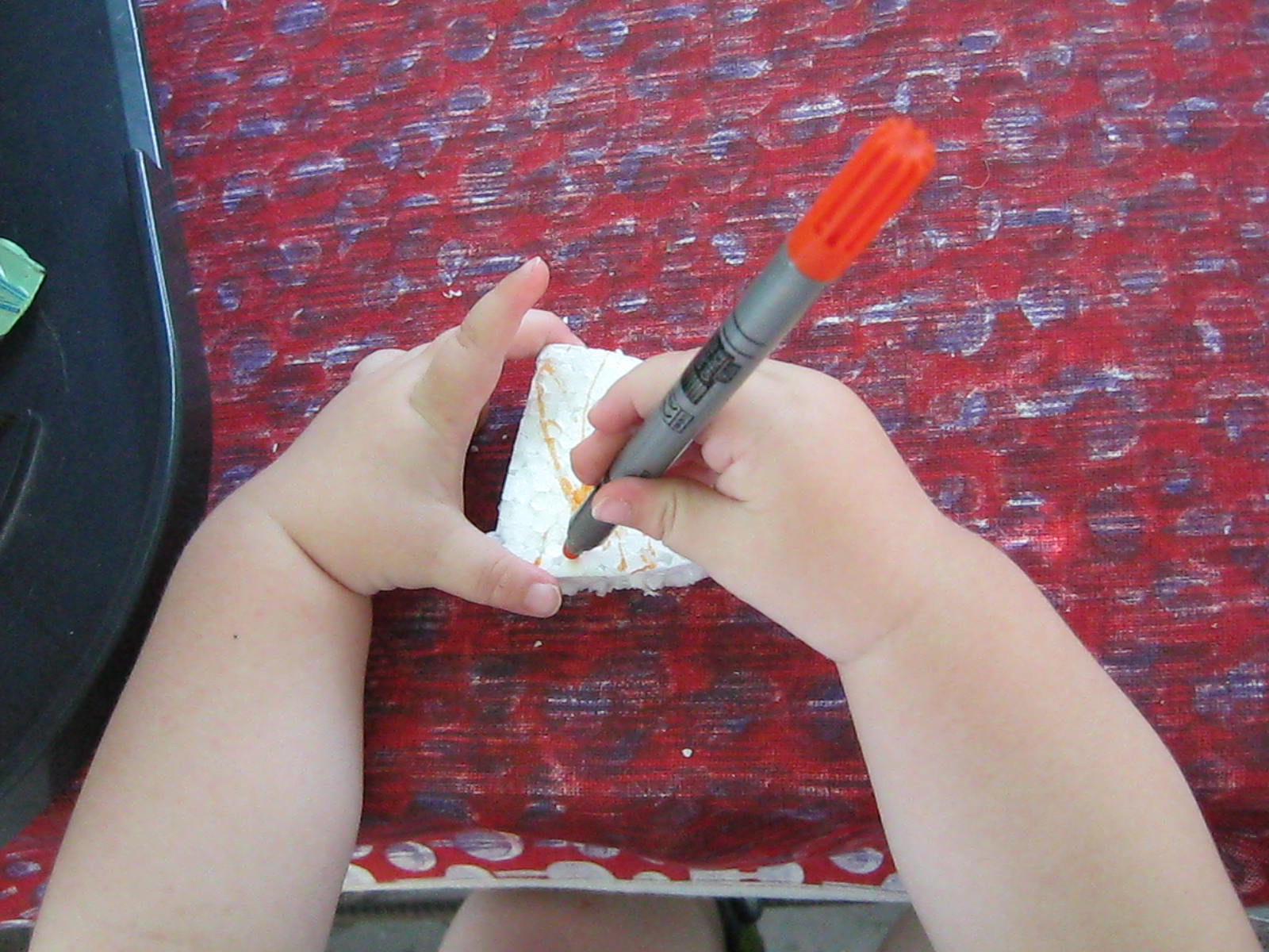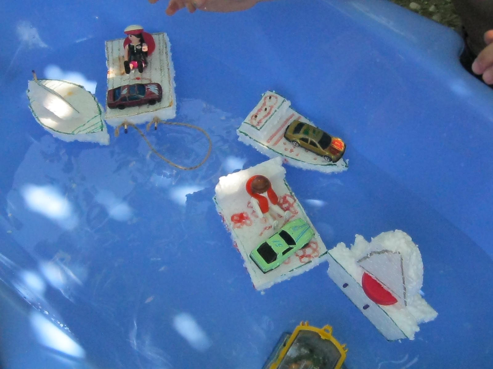 Asa ca astazi am facut diferite ambarcatiuni din pluta . Eu faceam modelul pe bucata mare de polistiren, le taiam cu cutter-ul ,iar D. le colora si le fixa cu chibriturile. SIgur si A. a participat la coloratul barcutelor. 🙂