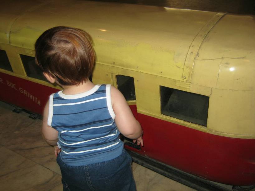 Foarte indragite de catre cei mici au fost trenuletele de dimensiune mai mare, pe care bineinteles nu s-au abtine sa nu le atinga. A. chiar deschisese o usita sa intre inauntru :D.. Sigur, D era foarte atent: fusese instruit dinainte sa nu atinga exponatele (asa este in orice muzeu), dar micutul A. nu a tinut cont de instructiunile mele-a considerat ca nu sunt pentru el :D.
