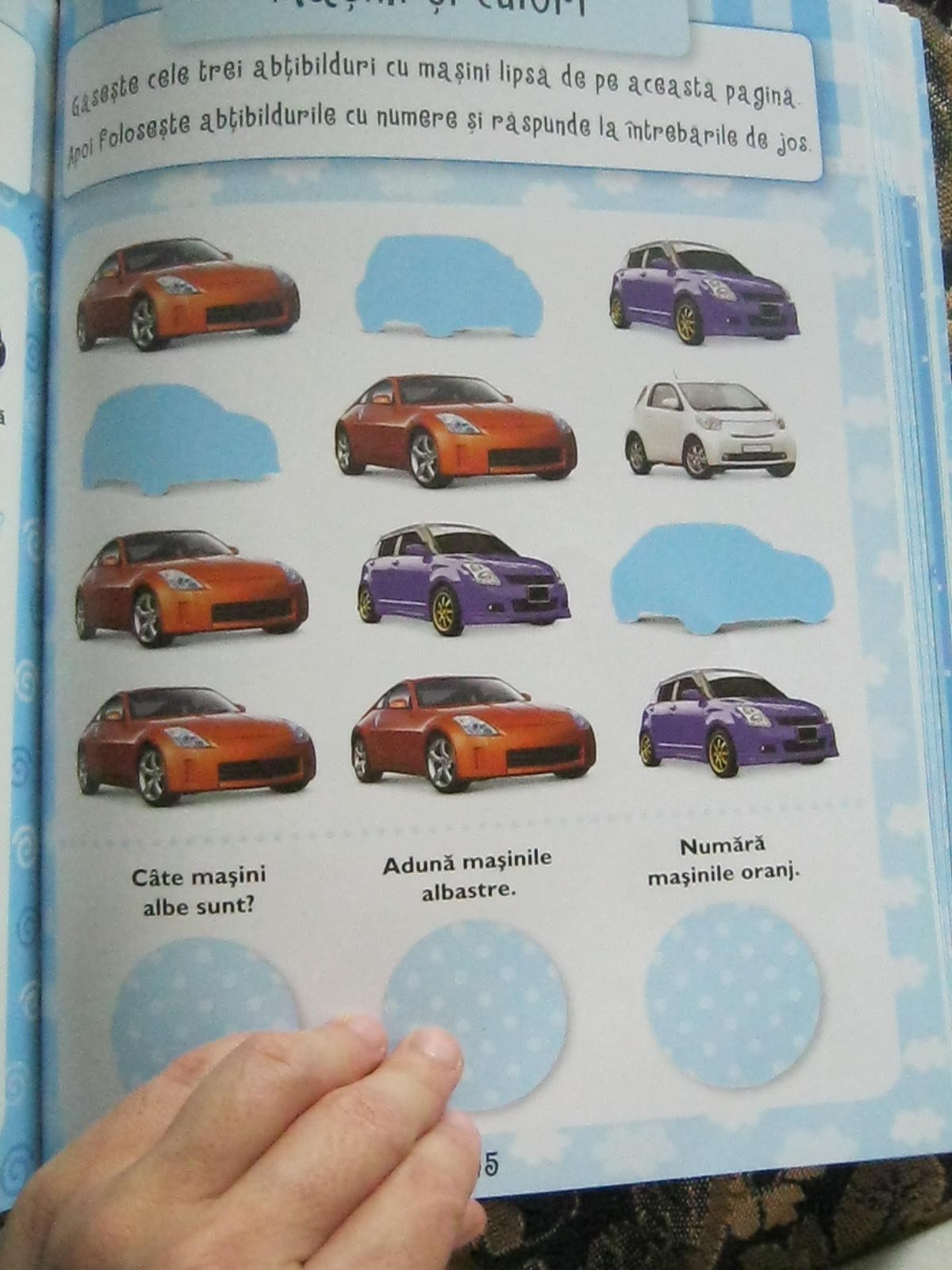 Are o multime de jocuri, puzzle-uri, activitati cu imagini si peste 350 de abtibilduri usor de lipit si apoi de dezlipit. Aceasta carte, minunat de albastra 🙂 ii va amuza pe copii in timp ce vor invata despre Ferma, Animale salbatice, Masini, MEga utilaje , Dinozauri si COsmos.