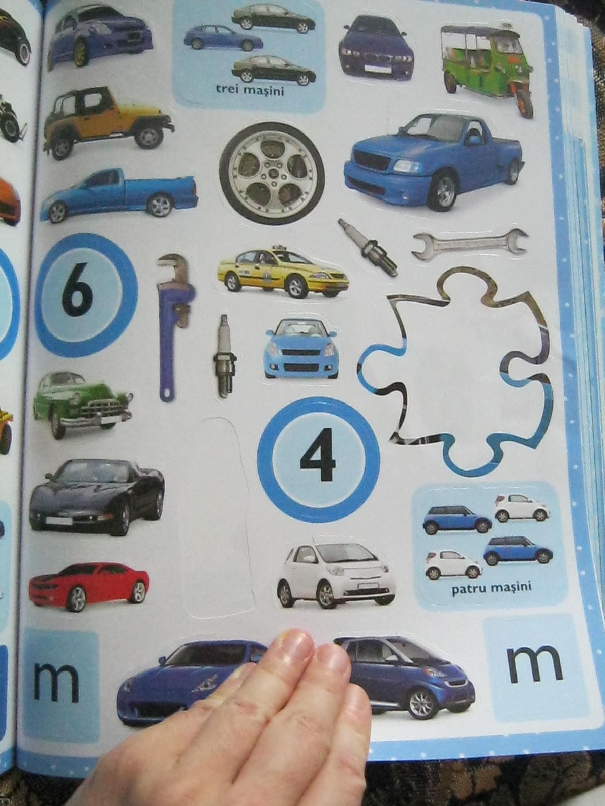 Sigur, doresc sa va prezint o carte pentru baietei ce am descoperit-o de curand in biblioteca din orasul nostru. NU am imprumutat-o, pentru ca avea muuulte abtibilduri reutilizabile si nu as fi vrut sa-l necajesc pe D. cu ea, desi imi placea tare mult sa i-o arat. Doamna de la biblioteca mi-a spus ca abtibildurile nu pot fi desprinse de acolo (bine, mi se parea normal).