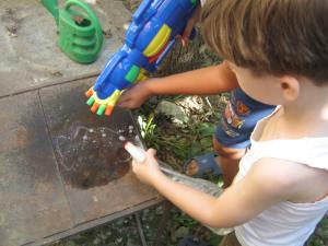 Unul dintre ei, pentru ca nu-i mai functiona bine pistolul cu apa….s-a pus pe desenat microbi…ceilalti se mirau….”woooow…cum apar altii atat de repede??? ” :D…Si le-am spus, pai nu stiti ca microbii apar prin diviziune….foarte repede se inmultesc ? :).