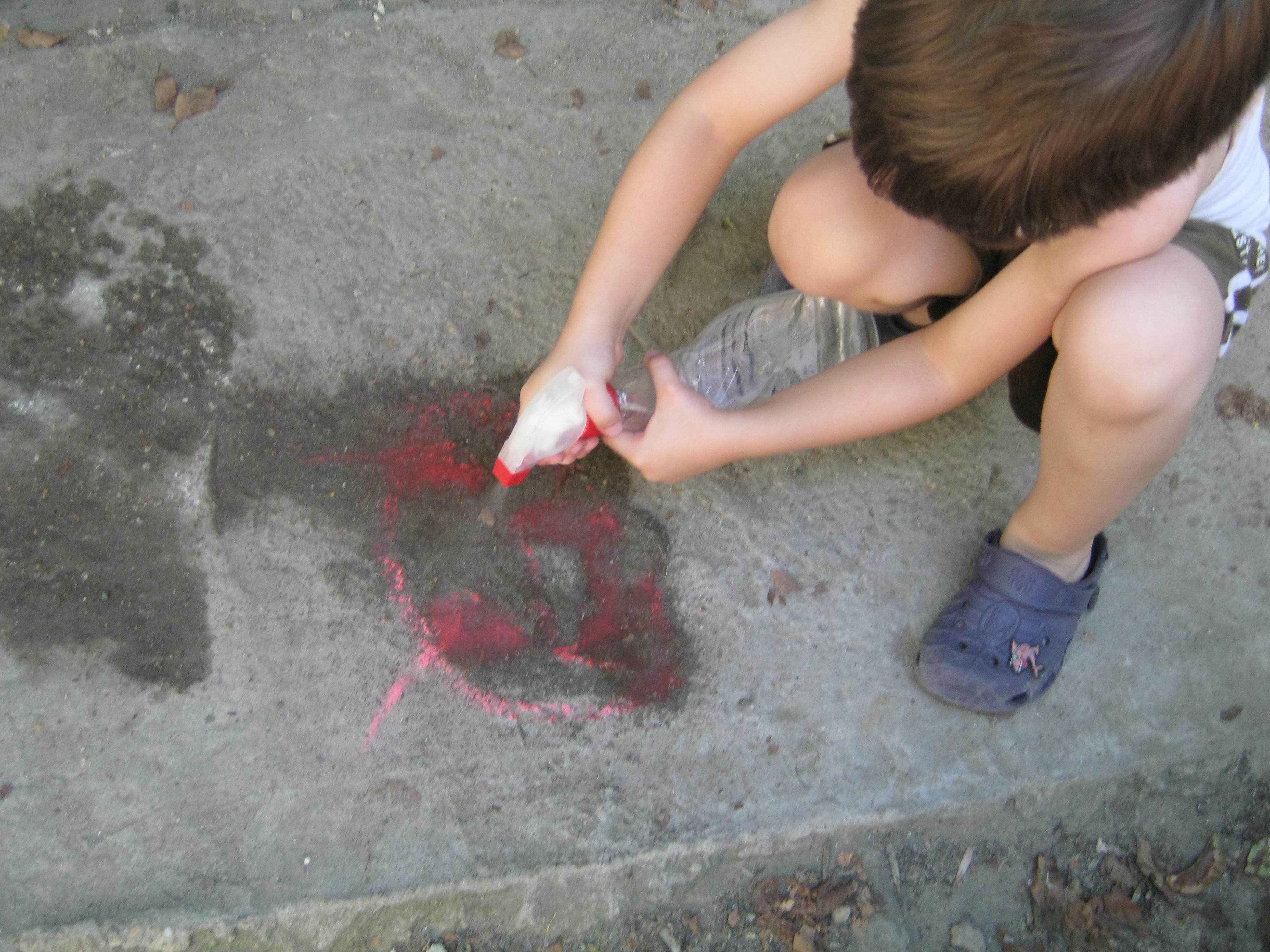 Trebuiau sa stropeasca cu apa pana nu se mai vedea nici pic de creta….cei roz erau tare greu de sters si tot apareau  la loc. 🙂