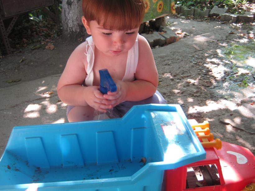 Nu am putut avea prea multe jocuri afara, in curte, pentru ca a fost tare cald. NE-am jucat vreo doua ore dimineata si o alta ora dupa pranz cand se lasase umbra in curte.
