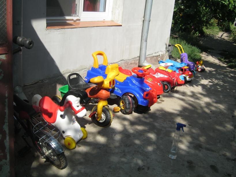 :))) parcarea voastra imi aduce aminte de a noastra doar ca noi nu mai folosim jucariile de tras (le-am daruit unor copilasi care nu au), la noi gasiti si tractorase cu remorci, trotinete….;)