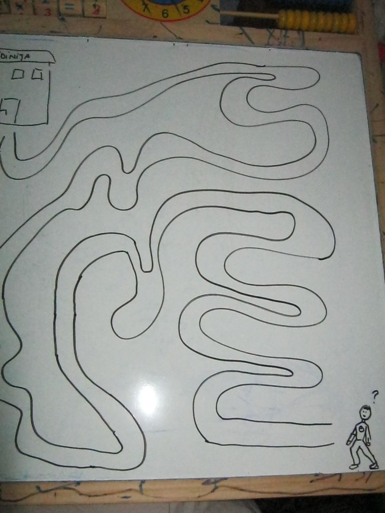 I-am facut lui D. pe tablita mare magnetica tot felul de labirinturi (este un joc de perspicacitate ce-i place enorm). SIgur, le rezolva cat ai clipi pentru ca ii plac!! 🙂