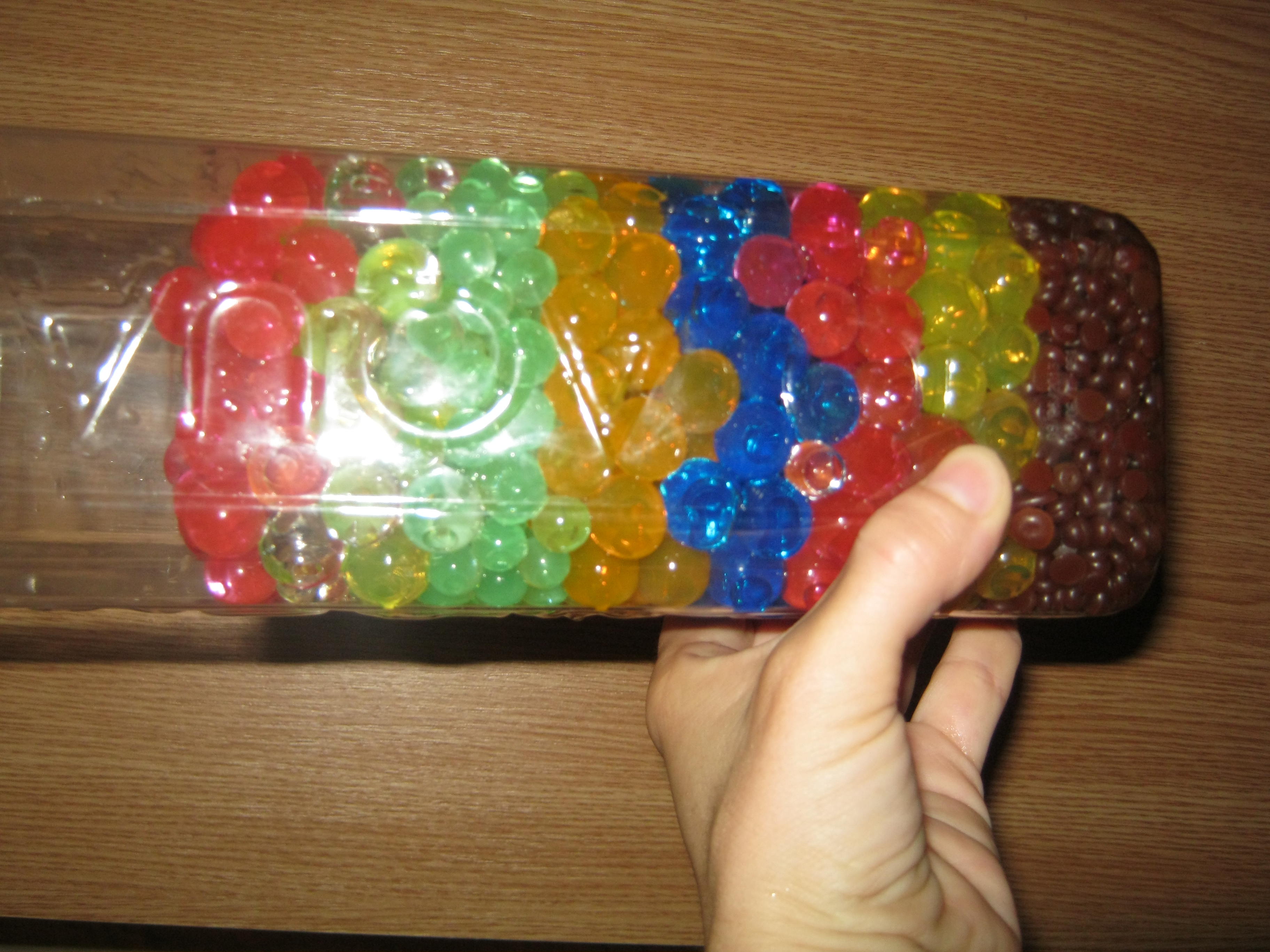 Apoi, am turnat in straturi, ca la sticlutele cu orez  bilutele hidrofile.