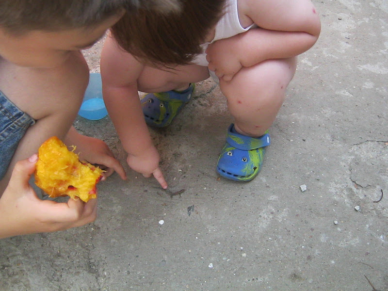 D. , verisorul si A. cel curajos (sunt uimita ca nu-i e frica de nimic) au pipait-o cu degetele. Desi mie nu-mi plac taratoarele :), aceasta micut puiut mi s-a parut simpatic. Sigur, nu am pus mana pe ea!! D. im seamana…dar pentru ca si el vrea sa fie un baiat adevarat….a trecut peste teama lui si a atins-o de cateva ori chiar daca nu-i placea….a vrut sa le demonstreze ca si el poate 🙂 Daca era o soparla mare, nu ii lasam sa o atinga.