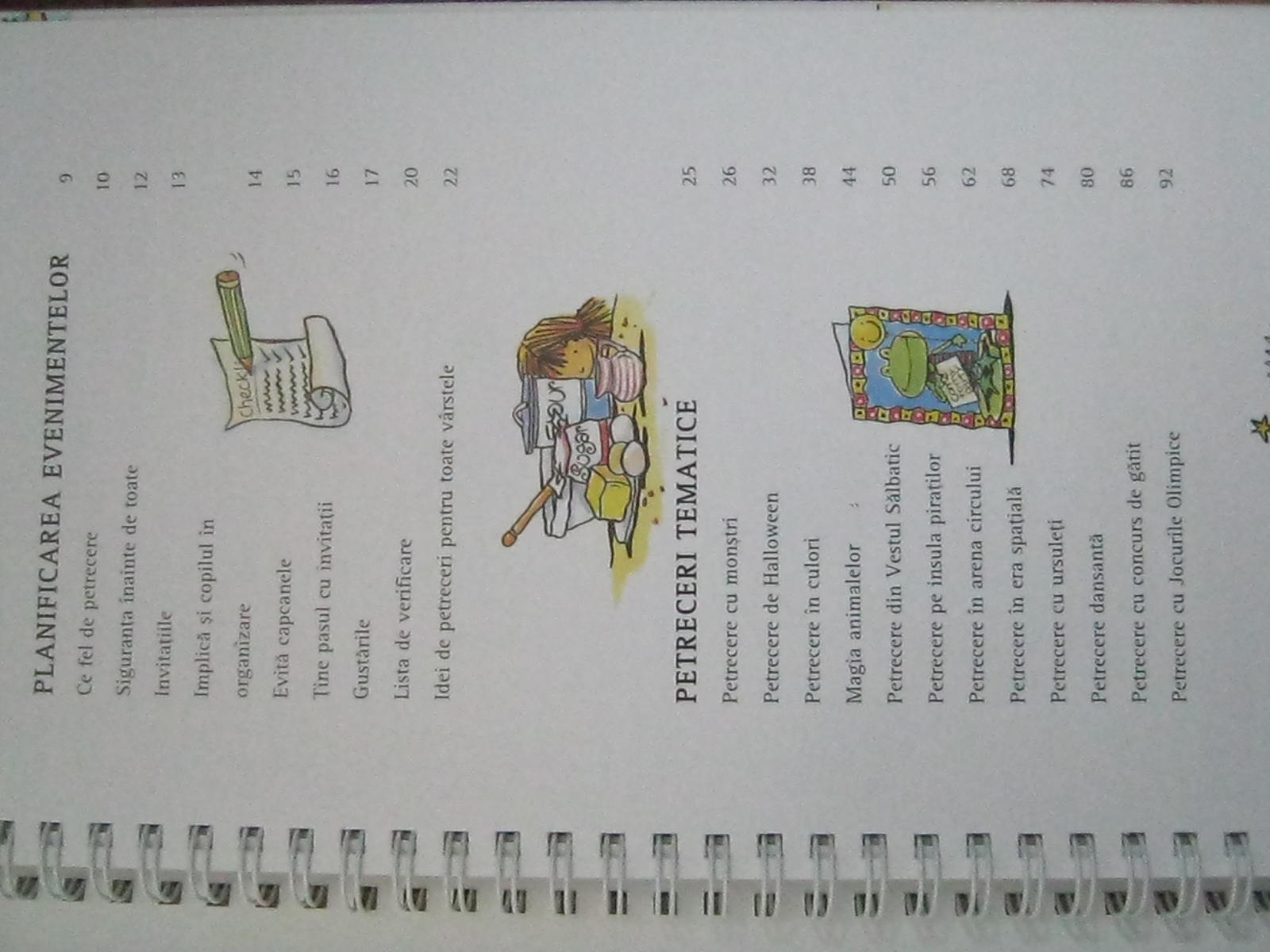 Fiecare aniversare este speciala in felul ei si, cu putina atentie si planificare, poti crea o petrecere pentru copilul tau pe care sa si-o aminteasca toata viata cu placere. Nu trebuie sa dai spargere la o banca si nici sa-ti iei concediu o saptamana pentru a pregati o petrecere. Desi petrecerile pentru copii sunt disponibile pe scara larga putand fi organizate de firmele specializate, unde ti se ofera pachete complete, cu mancare, distractie si decoratiuni, poate preferi totusi o petrecere personalizata, traditionala, organizata chiar de tine. Daca asa stau lucrurile, aceasta carte ti se adreseaza cu siguranta.